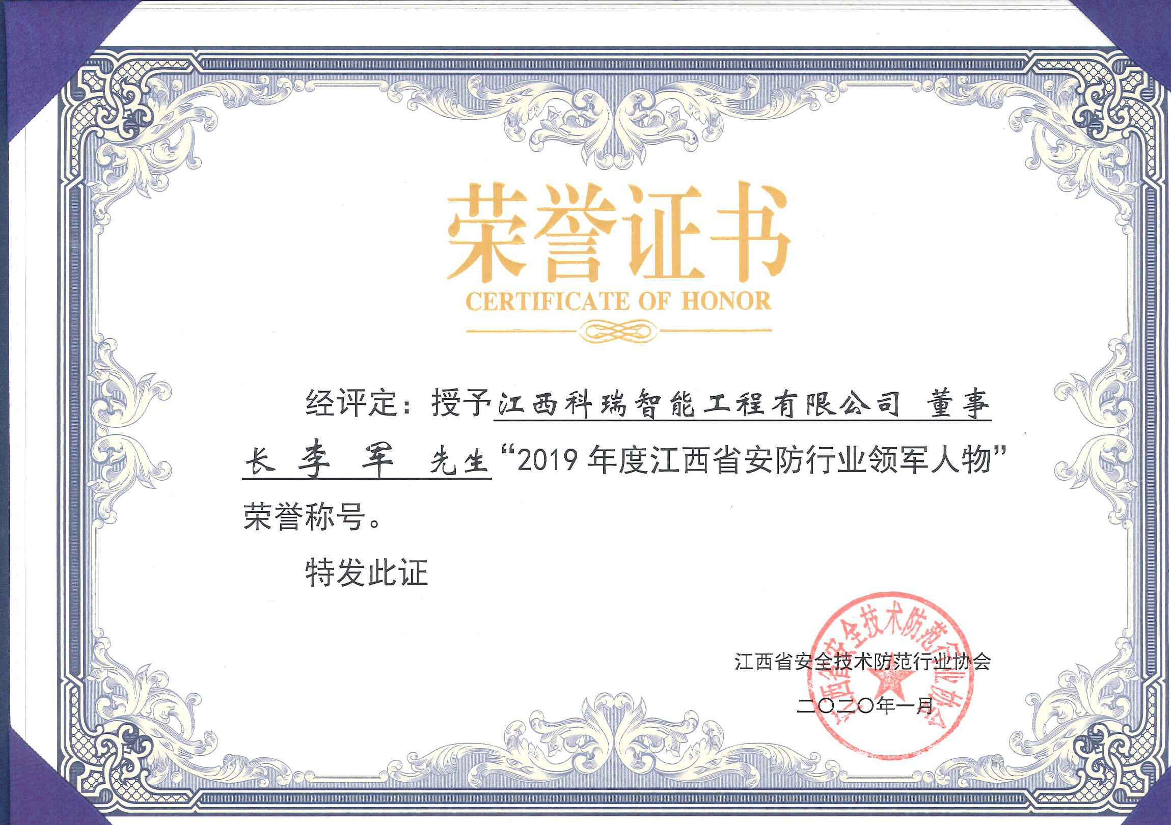 1月9日,在江西安防協(xié)會第五屆第三次會員代表大會暨2020科瑞之夜新春年會上進行了2019年優(yōu)秀企業(yè)及領(lǐng)軍人物頒獎、慈善募捐等活動,科瑞智能喜獲“2019年江西省優(yōu)秀安防工程企業(yè)”、公司董事長李軍先生被授于“2019年度江西省安防行業(yè)領(lǐng)軍人物”榮譽稱號。